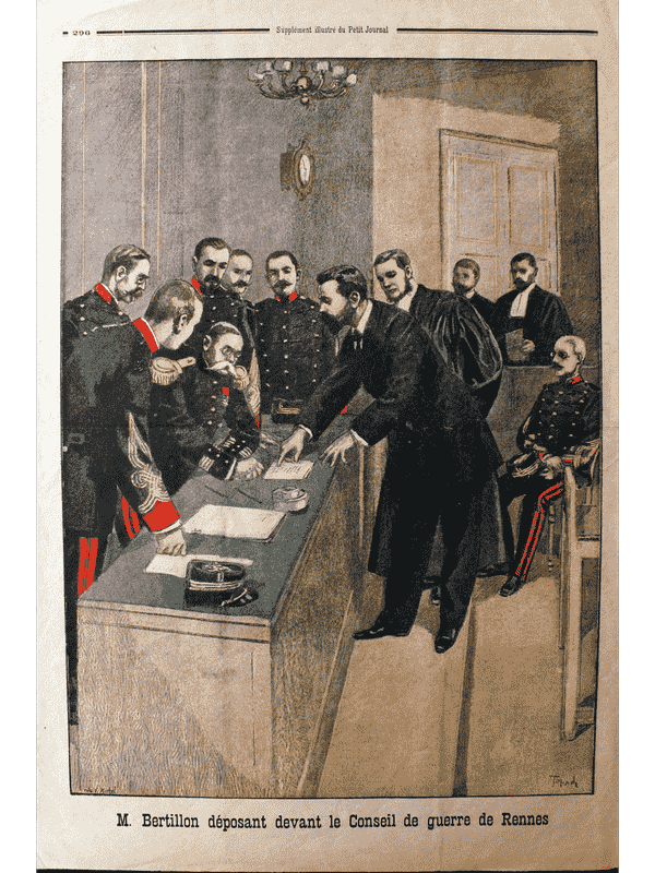 Citons l’exemple d’Alphonse Bertillon, appelé en tant qu’expert graphologue lors du premier procès pour ses qualités remarquées dans la mise en place du « bertillonnage », consistant en l’instauration de relevés anthropométriques et de photographies « face – profil » pour identifier plus facilement les criminels.